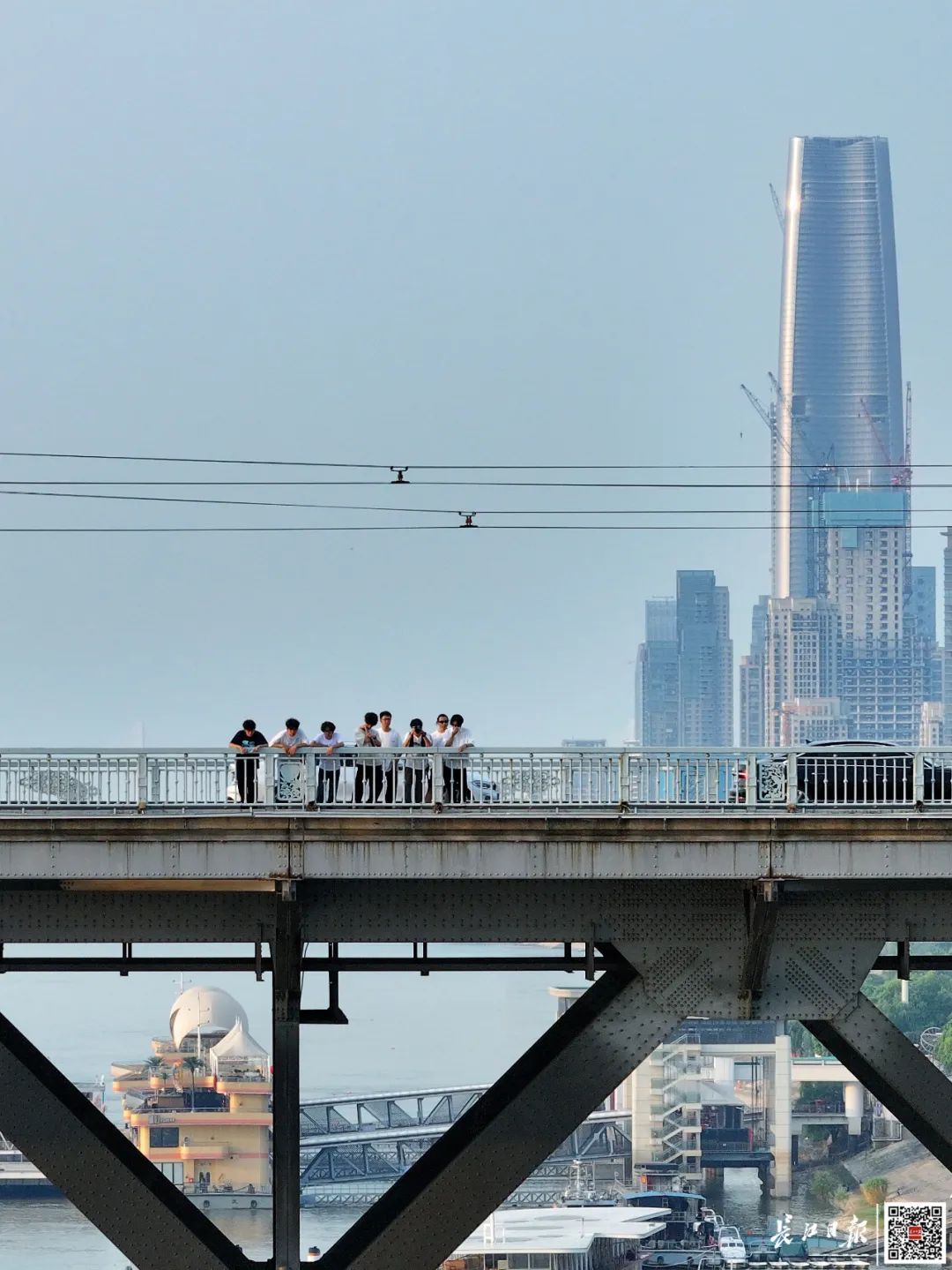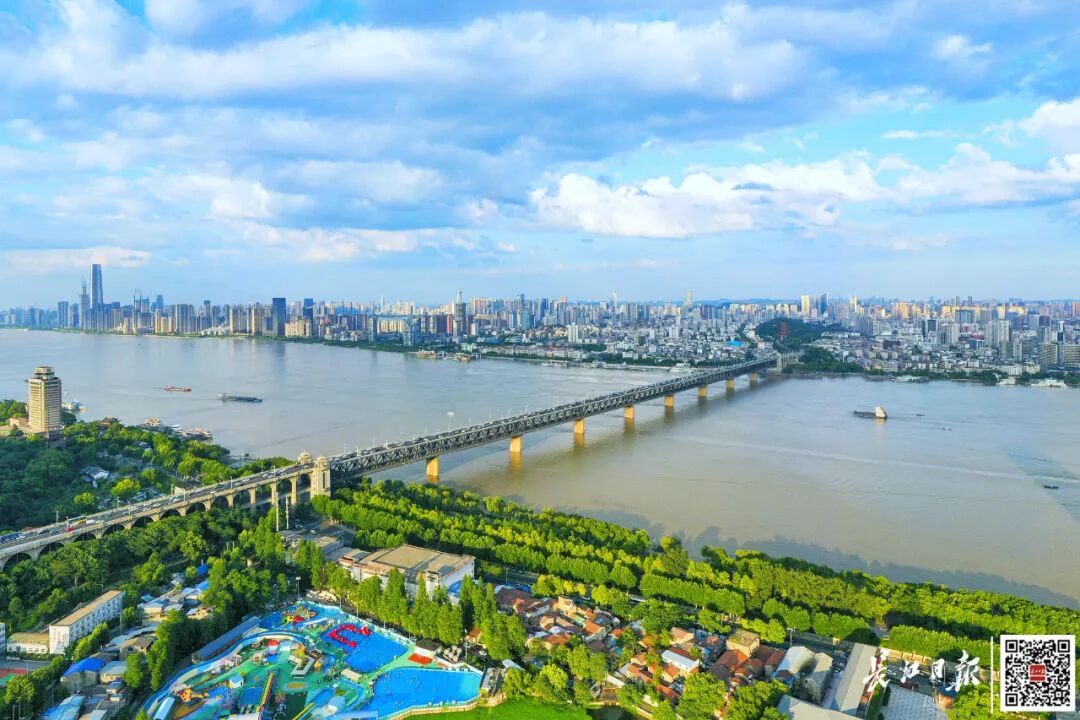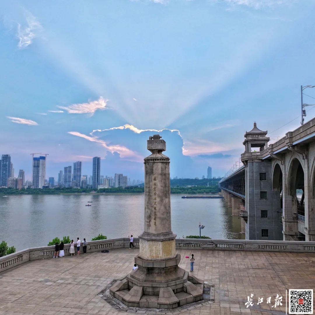 盛夏汛期,长江水位上涨,江面变得宽阔,人们来到桥畔,亲近江水,欣赏桥景。桥梁,不再只是过江通道,它成为武汉人日常生活的一部分。