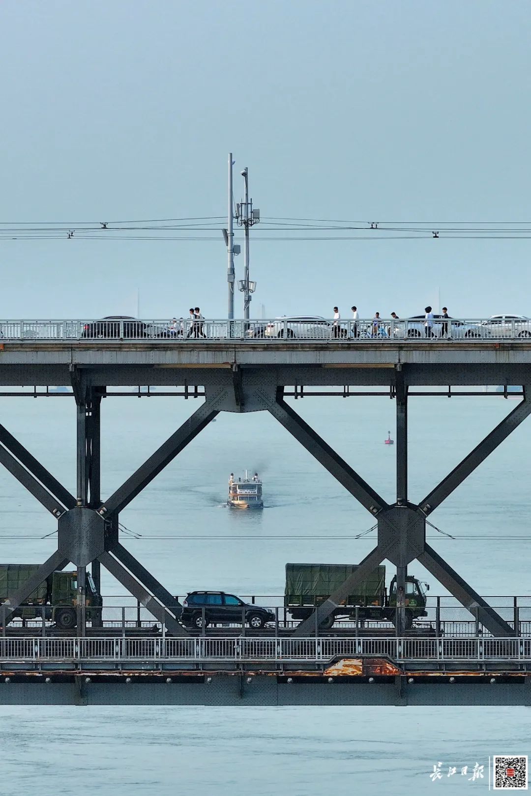 武汉长江大桥上下两层,上层行人行车,下层为铁路。记者胡冬冬 摄