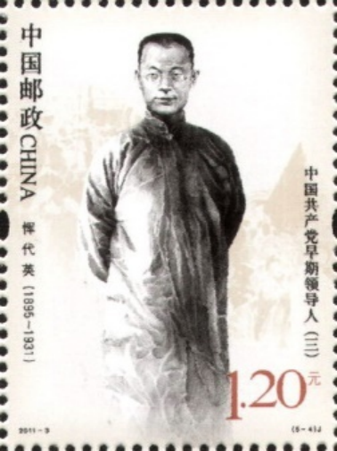 ▲2011年2月21日发行的《中国共产党早期领导人(三)》纪念邮票——恽代英