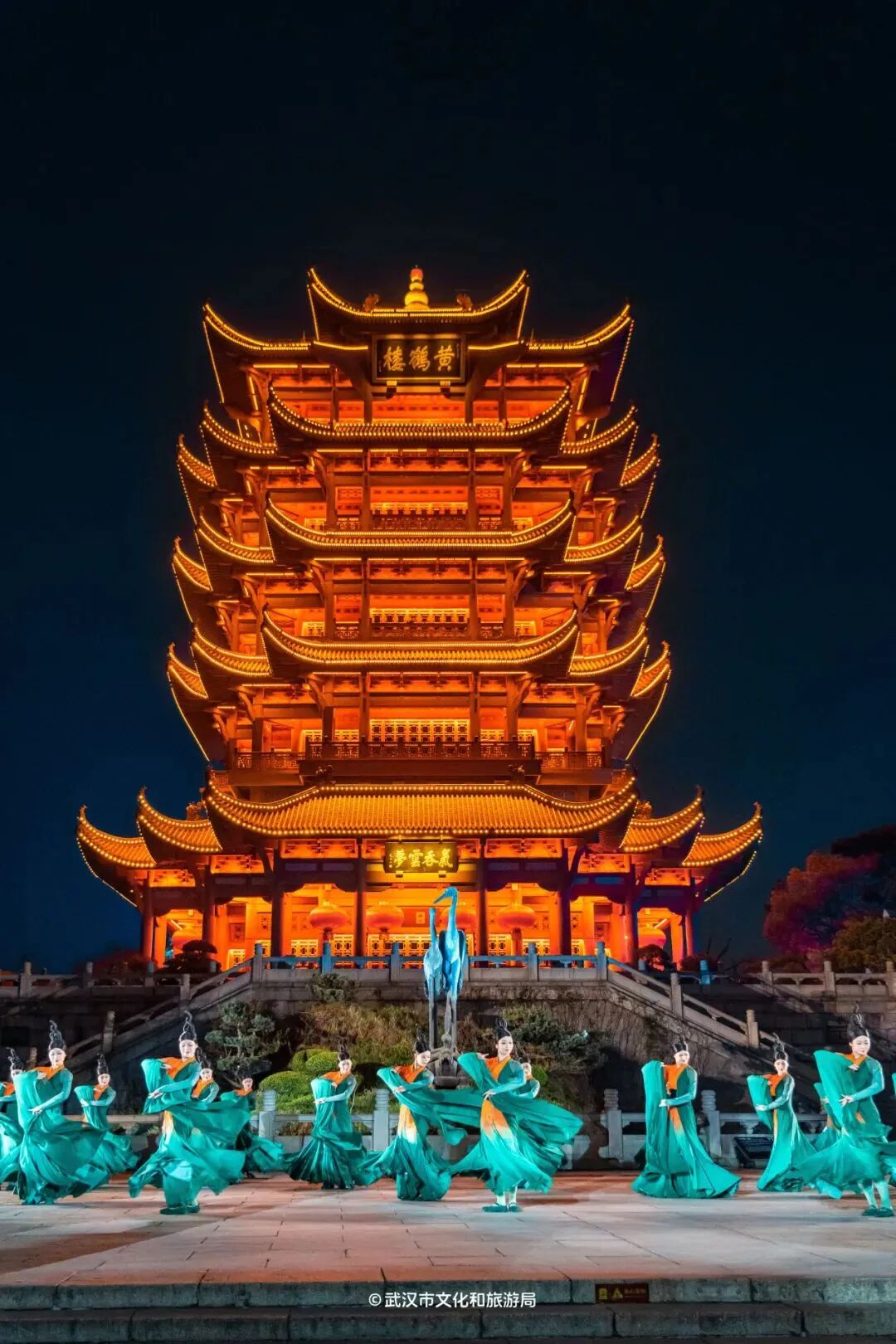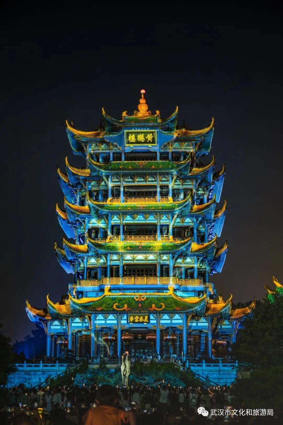 夜晚,黄鹤楼的夜景更是美不胜收。当《夜上黄鹤楼》的灯光亮起,黄鹤楼便化身为一块灵动画布,而光影是画师,它泼洒,它勾勒。