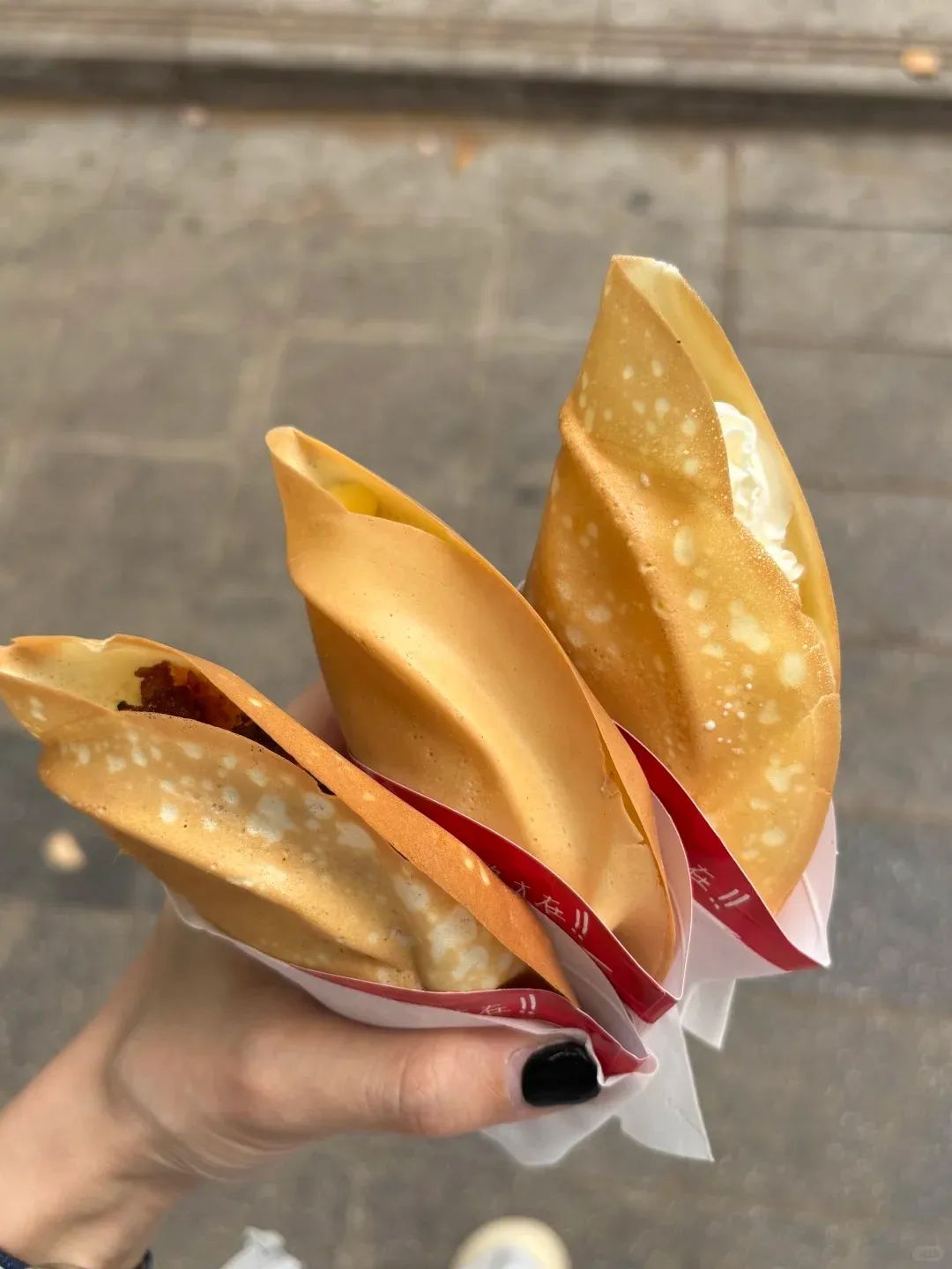 请在肚子里给隔壁的柒个蛋烘糕留这个位置。每一个蛋烘糕都是现做,喷香的鸡蛋糕里面夹杂着不同的馅料,可咸可甜可辣。