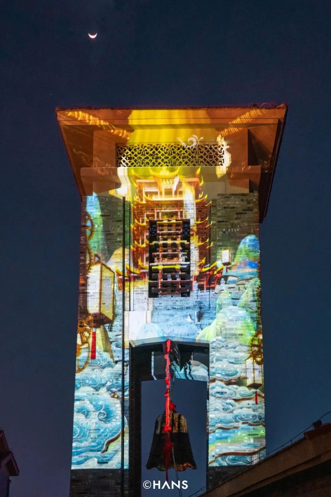 城墙和钟楼灯光秀每晚7:30准时亮起,从三国时期到未来,一幅幅生动的历史画面逐渐在眼前展开,如梦如幻的光影点亮了整个昙华林。