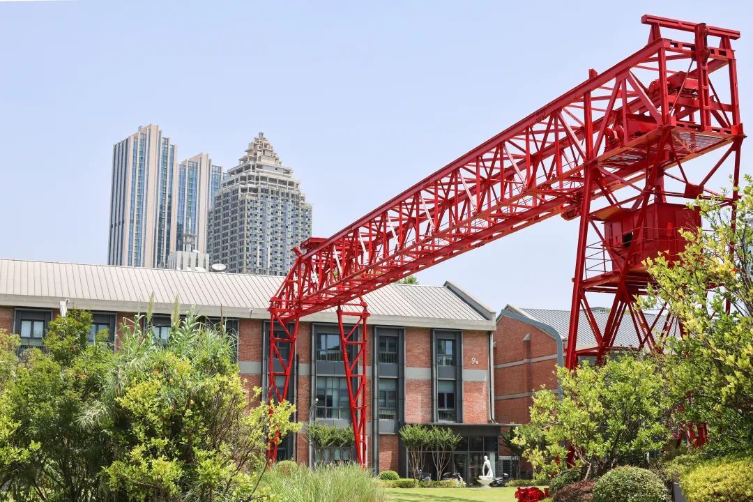 漫步园区,红色的砖墙,巨大的龙门吊,随处可见的工业风装饰,完整复刻了上世纪老工业基地的格调。