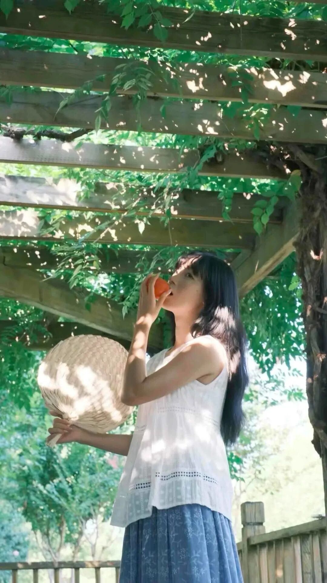 3、仰拍,带到有藤蔓的屋顶,增加照片的纵深层次。