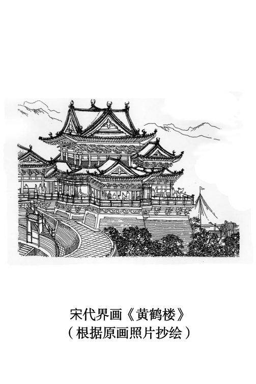 到了宋代,重建的黄鹤楼从城墙中分离出来,结构上更繁复精细,翼角嶙峋,装饰华丽,凸显宋人意趣。