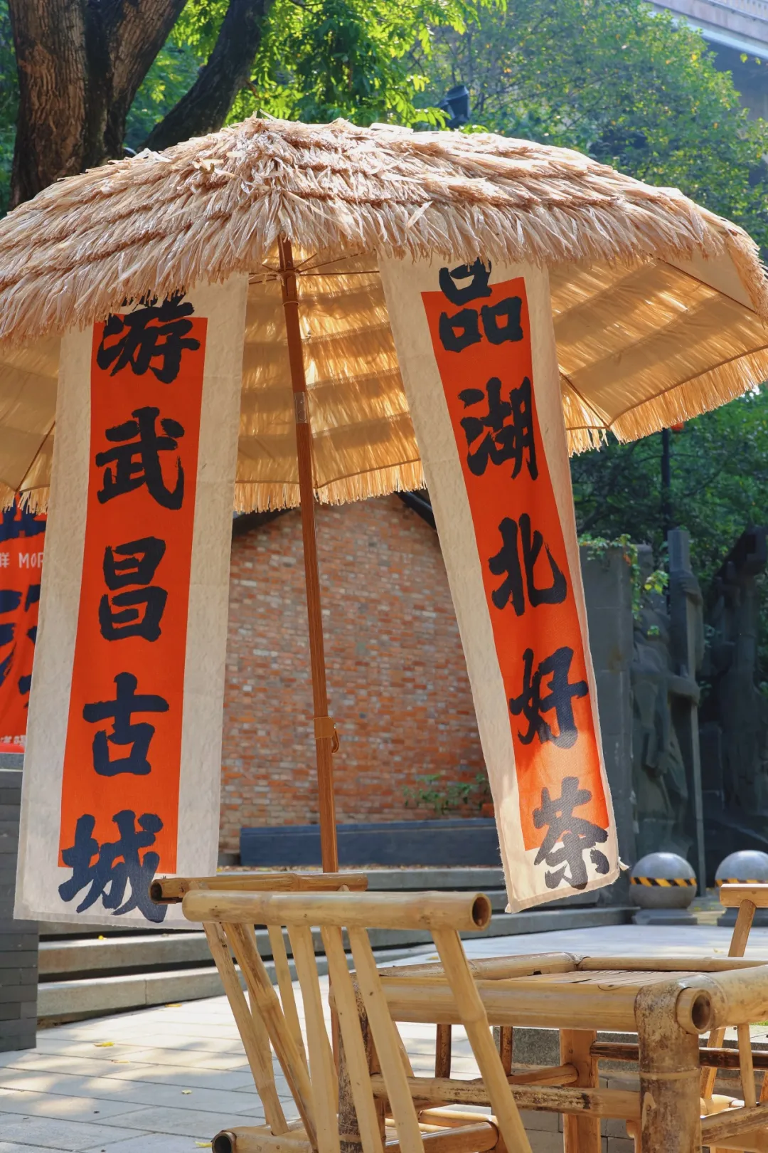 只见蛇山脚下,绿荫掩映,竹桌竹椅间点缀着书法卷轴,茶香与墨香交融,三五好友围炉煮茶,听火车飞驰经过长江大桥的声音,其乐融融。汉阳门红茶馆的老板曾峻岭正忙碌地穿梭于顾客之间,为大家点茶、添水。