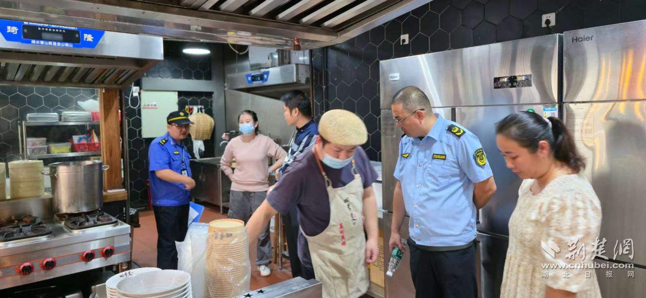 区城管局联合市监、消防部门,对四季美汤包店开展联合检查。通讯员供图