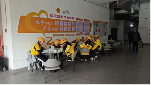 街道工会始终以“娘家人”的担当,将温暖送到劳动者最需要的地方。为精准解决骑手、快递员等新就业群体面临的饮水、充电、休憩等实际困难,街道工会联合武昌万象城精心共建新就业群体驿站。这里不仅是奔波途中的“暖心港”,更是实实在在的“补给站”——保温桶里热水常备,多组快充桩高效便捷,微波炉让饭菜重新飘香。此外,凭工作证还可在万象城众多商户享受专属折扣,让实惠看得见、摸得着。