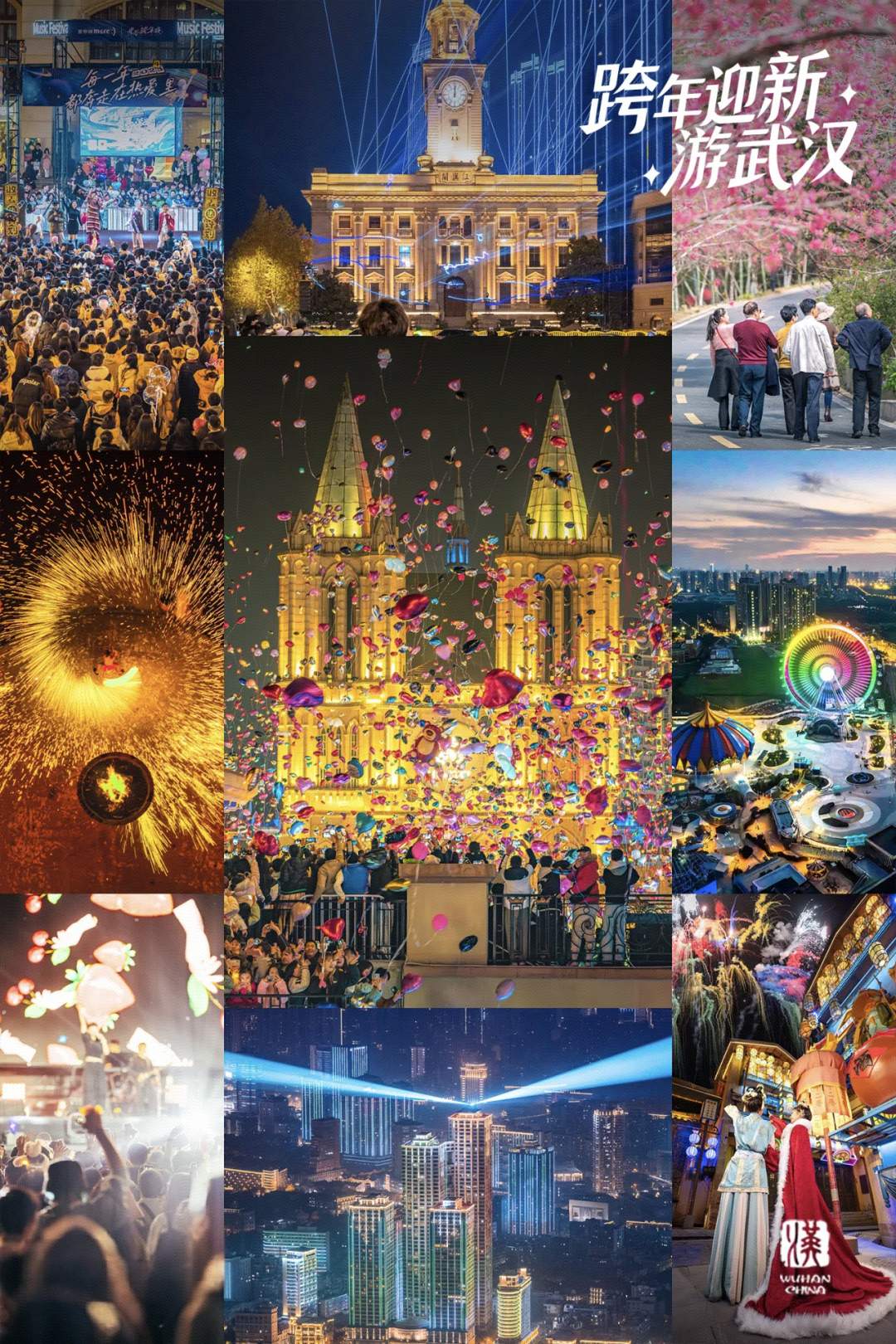 地点丨江汉关大楼、黄鹤楼、晴川阁、龟山电视塔、光谷星河、光谷世界城、经开“春笋”、东湖之眼、甘露山摩天轮、楚天之眼摩天轮等城市地标;两江四岸楼宇、桥梁、游船、地标建筑等