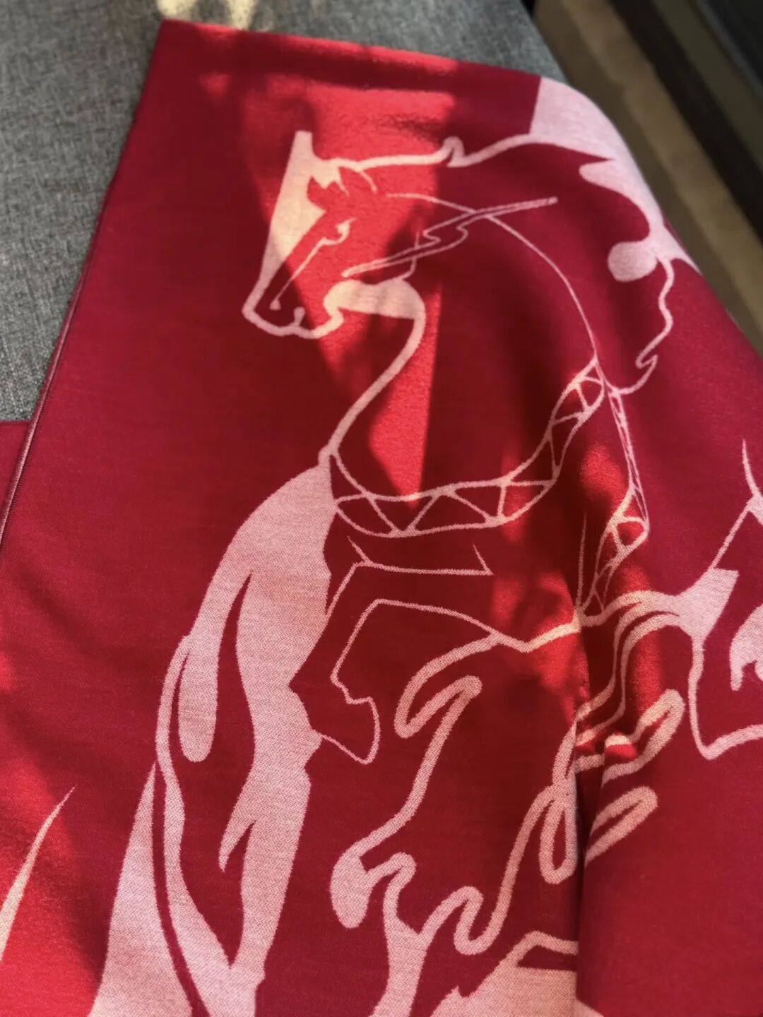 马年开运红围巾——马跃鸿图刚上新便火速成为爆款。鲜红底色上,骏马奔腾的图案灵动跃然,设计灵感源于《楚王车马阵》,自带“鸿运当头”的吉祥寓意。拼音“CHU”暗藏楚文化底蕴,字母“C”形似马蹄,环绕的烈焰纹更呼应楚文化尚火传统,层层巧思间,寄寓着“前程似锦”“红火兴旺”的美好祝愿。围巾手感软糯亲肤,一巾多搭适配多种造型,堪称新年穿搭的吸睛必备单品。