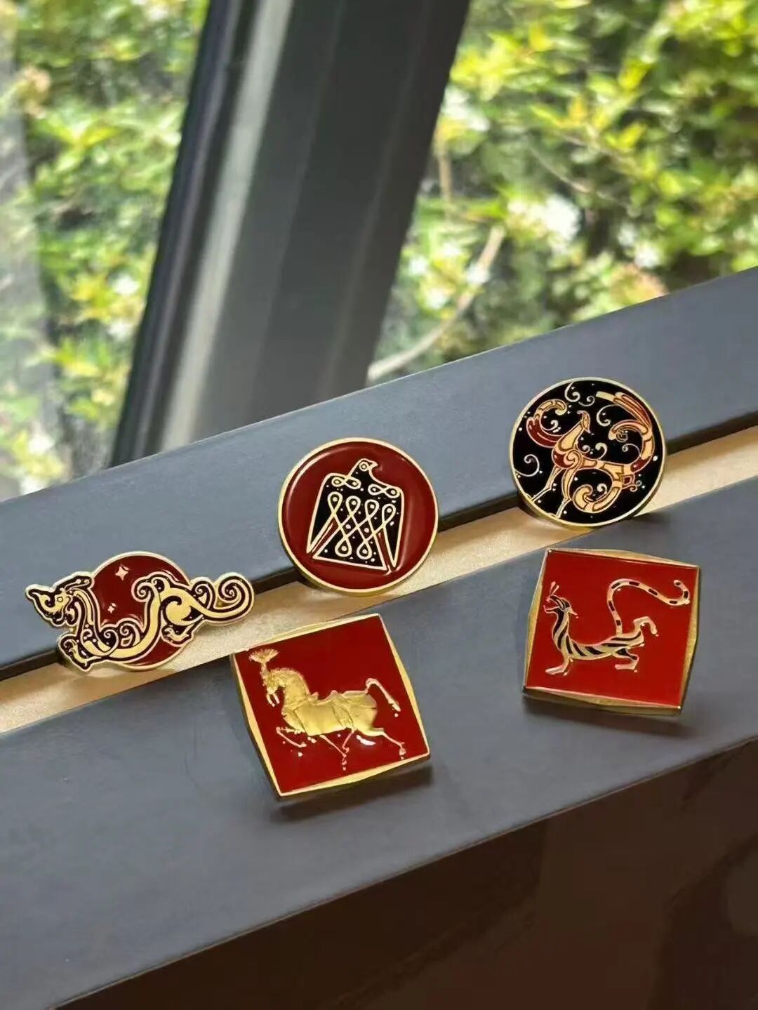 汉马金属徽章灵感源自东汉画像石《迎宾六博图》中的马纹,金色线条勾勒出奔马的矫健身姿,搭配赤红底色,尽显汉代雄浑大气的东方韵味。徽章不仅寓意积极进取、马到成功,自留收藏或赠予亲友都超显心意,该系列还有“祥龙”“吉虎”“楚凤”“福鸟”等多款主题徽章,每一款都设计精巧,藏着专属的吉祥寓意。