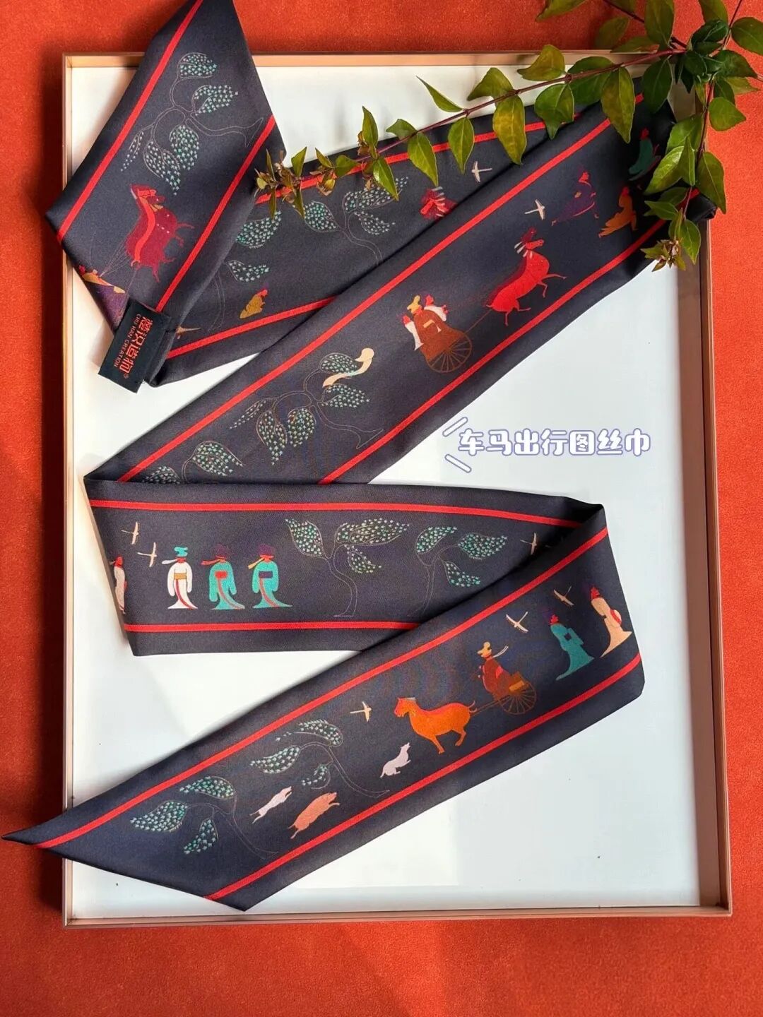 车马出行图真丝丝巾以丝为媒,将千年前楚国车马出行的盛景织入其中。这款曾荣获中国旅游商品大赛银奖的佳作,用途多样,可作头巾、领饰、包饰等,轻挽之间,楚韵便随身流淌。
