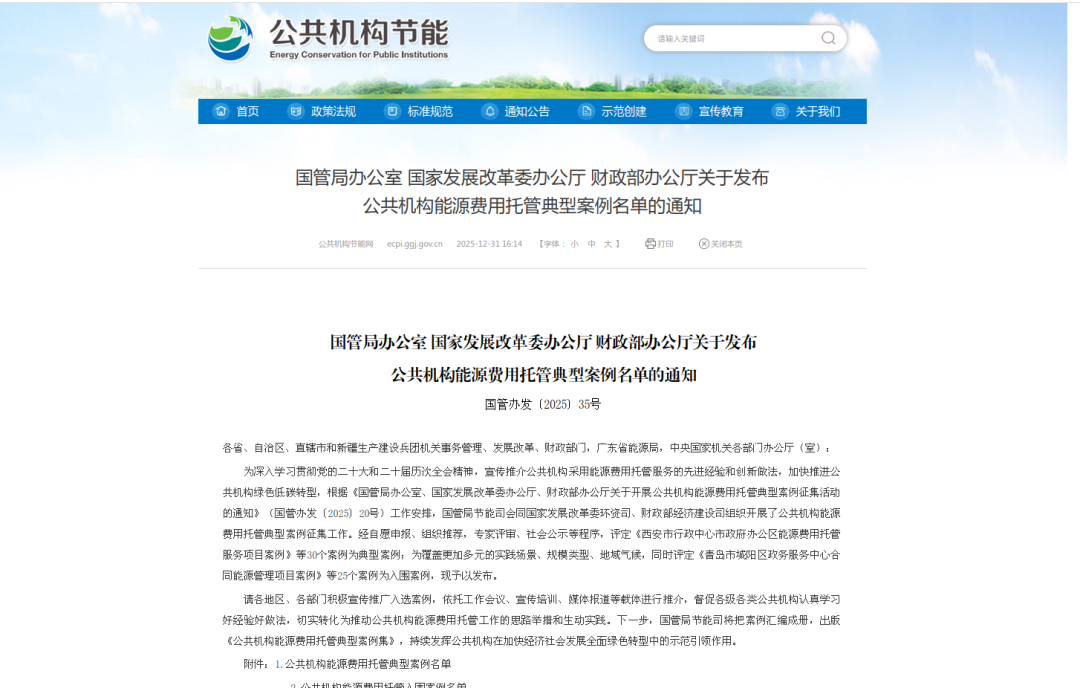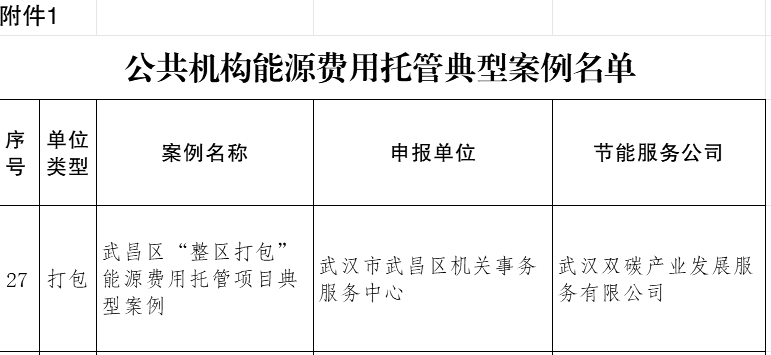 这份创新实践已收获国家级认可。近日,国管局办公厅、国家发展改革委办公厅、财政部办公厅联合发布公共机构能源费用托管典型案例名单,武昌区“整区打包”能源费用托管项目成功入选,成为全国示范样本。