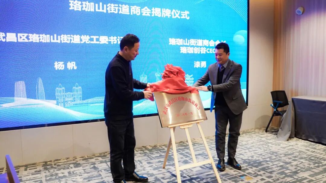 现场另一项重点议程为武昌区珞珈山街道商会揭牌仪式,街道商会的成立,一方面为辖区各类企业搭建了交流平台,促进辖区信息互通、资源共享;另一方面,街道商会也借力武大校友企业家联谊会,做优校友服务,邀请校友企业家回汉兴业,融入“楚商回乡”“浙商聚汉”发展浪潮中来。
