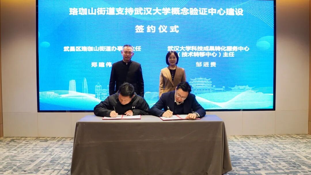 ▲武昌区珞珈山街道与武汉大学科技成果转化服务中心现场签约。