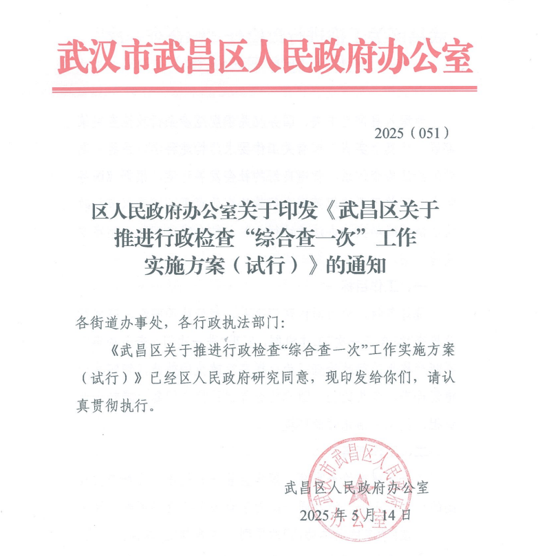 ▲2025年5月,武昌区出台“综合查一次”制度文件。