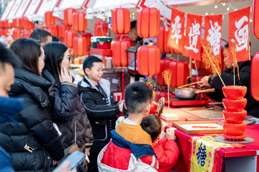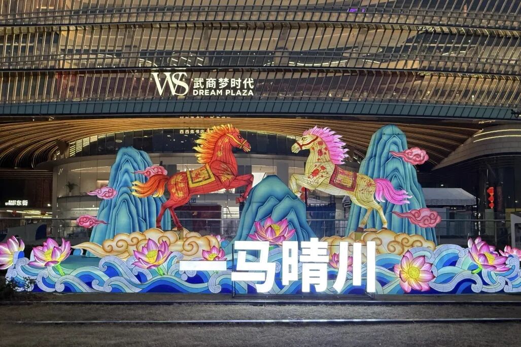 “马踏春归 元宵聚乐”主题活动在楚河汉街精彩上演。街区精心打造特色灯会长廊,流光溢彩、氛围感浓厚,同步设置新春马上发财市集,汇聚文创、美食、民俗好物,丰富市民消费体验。