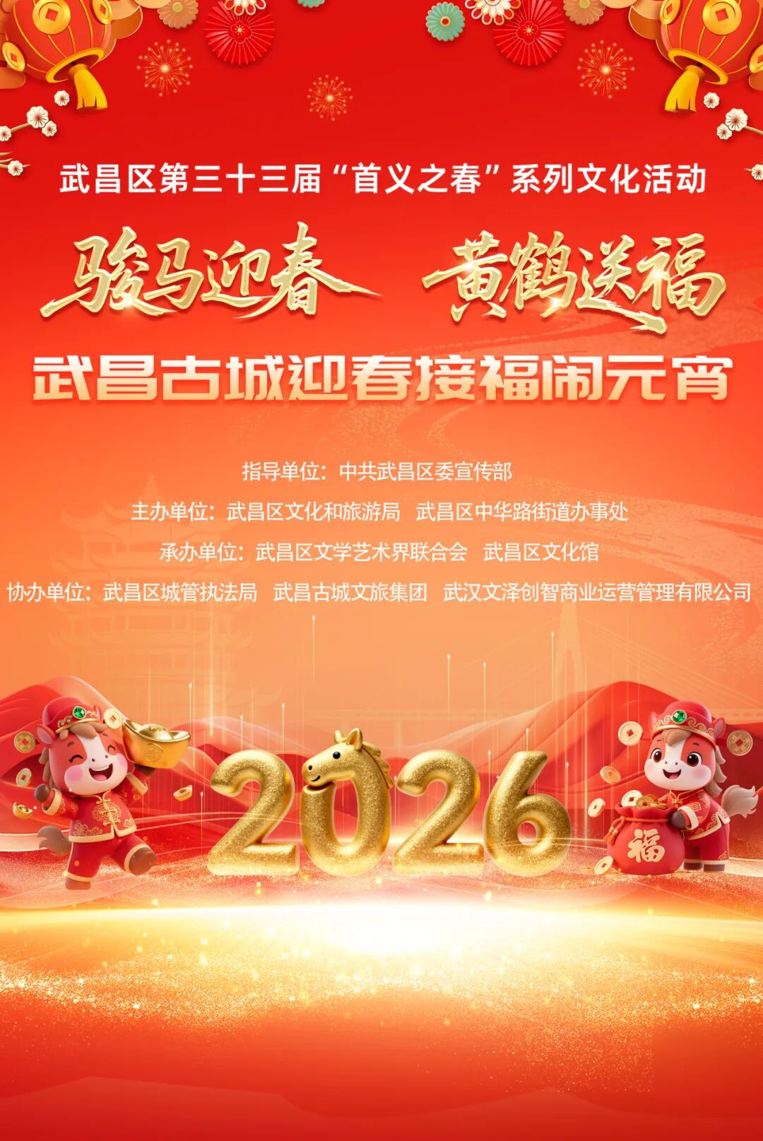 3月3日(正月十五)上午10点,武昌区第三十三届“首义之春”——“骏马迎春·黄鹤送福”武昌古城迎春接福闹元宵活动将在斗级营举行,邀您共赴这场元宵文化盛宴!