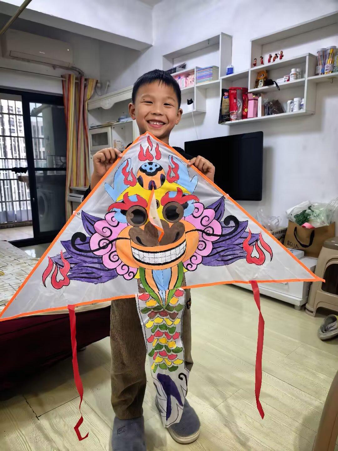 活动前夕,学校利用班会课开设了融合课程。老师们向学生讲解了中国风筝的历史、传统纹样(如意、祥云、五福等)以及空气动力学原理,让孩子们在惊叹中收获知识。清明假期,学生们将所学带回家中,与家长一起动手制作风筝——从削竹篾、绑骨架,到糊纸面、系提线,每一个步骤都凝聚着亲子间的默契。一只只独一无二的风筝不仅串联起科学与艺术,也拉近了亲子距离。